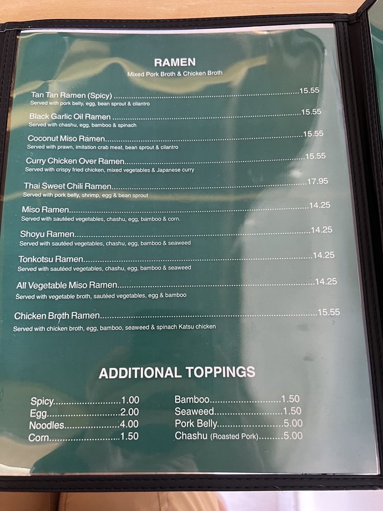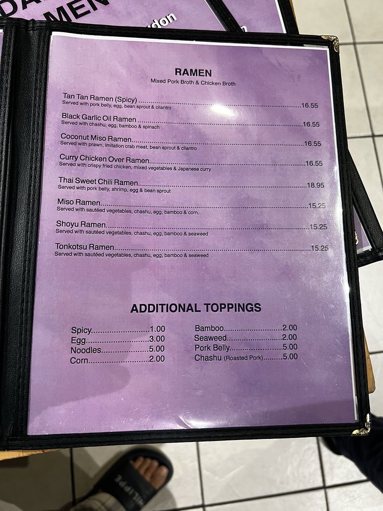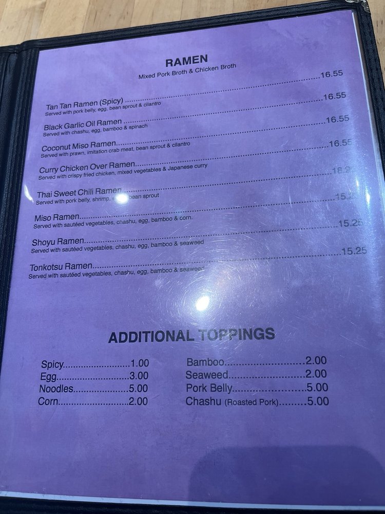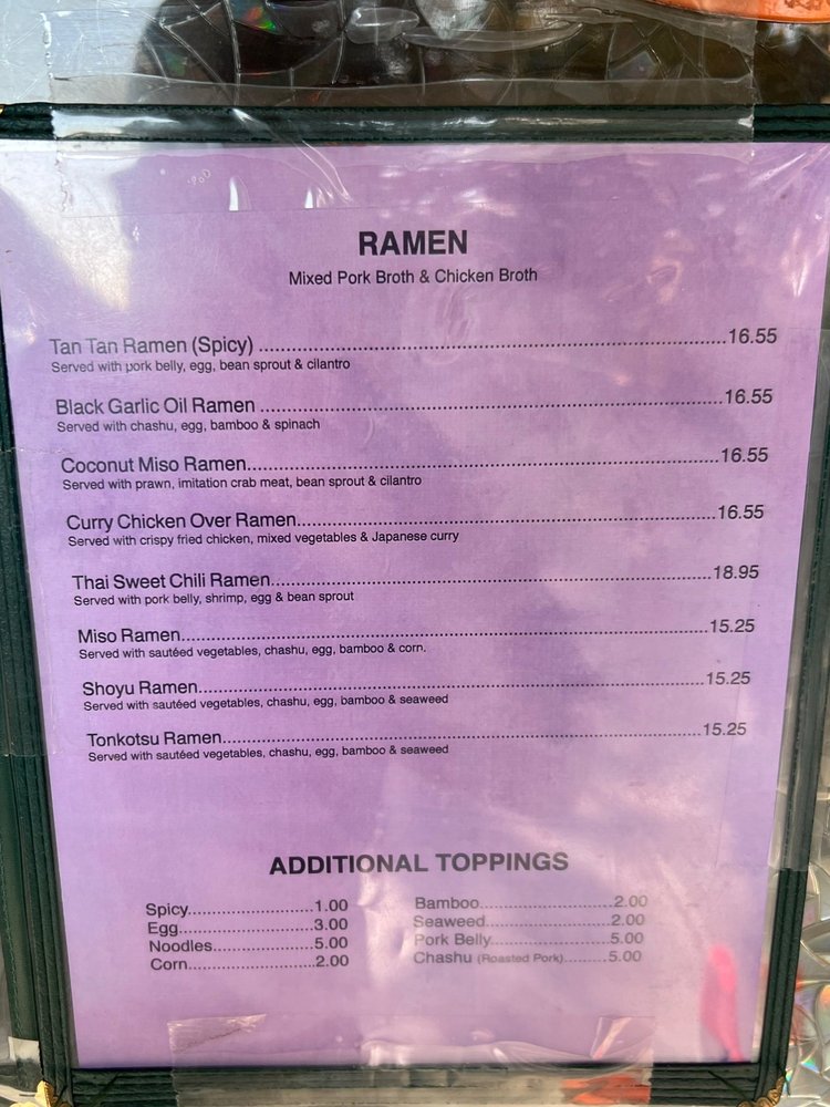 Tadamasa, located in Union City, offers a diverse menu with unique fusion twists on traditional ramen dishes. Customers rave about the Chicken Katsu Curry ramen, coconut miso ramen, and Thai sweet chili ramen. The cozy atmosphere and friendly service make Tadamasa a hidden gem for ramen lovers. The restaurant also offers vegan and vegetarian options, catering services, and happy hour specials. The menu features classic ramen options like shoyu, miso, and tonkotsu, alongside innovative creations that keep customers coming back for more. With a commitment to quality ingredients and bold flavors, Tadamasa is a must-visit spot for those craving delicious and comforting ramen dishes.
